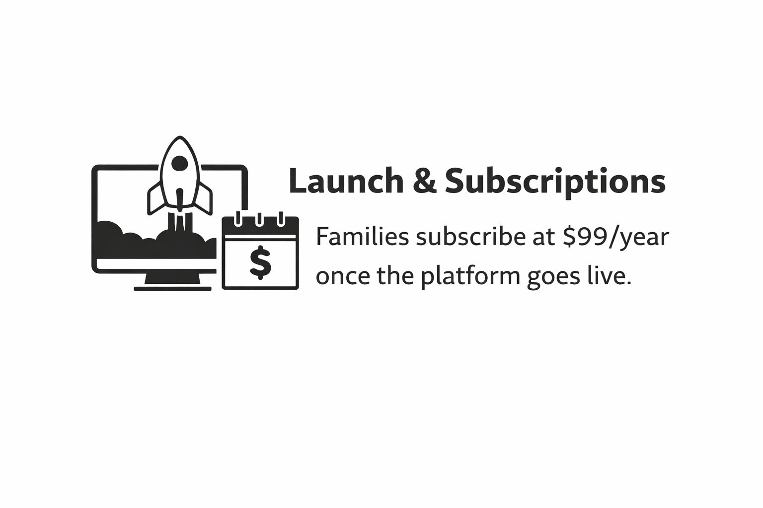 Revenue begins once the public app is live and subscriptions are available. Investor returns begin only once revenue is live—there are no payments prior to subscriptions generating revenue.
